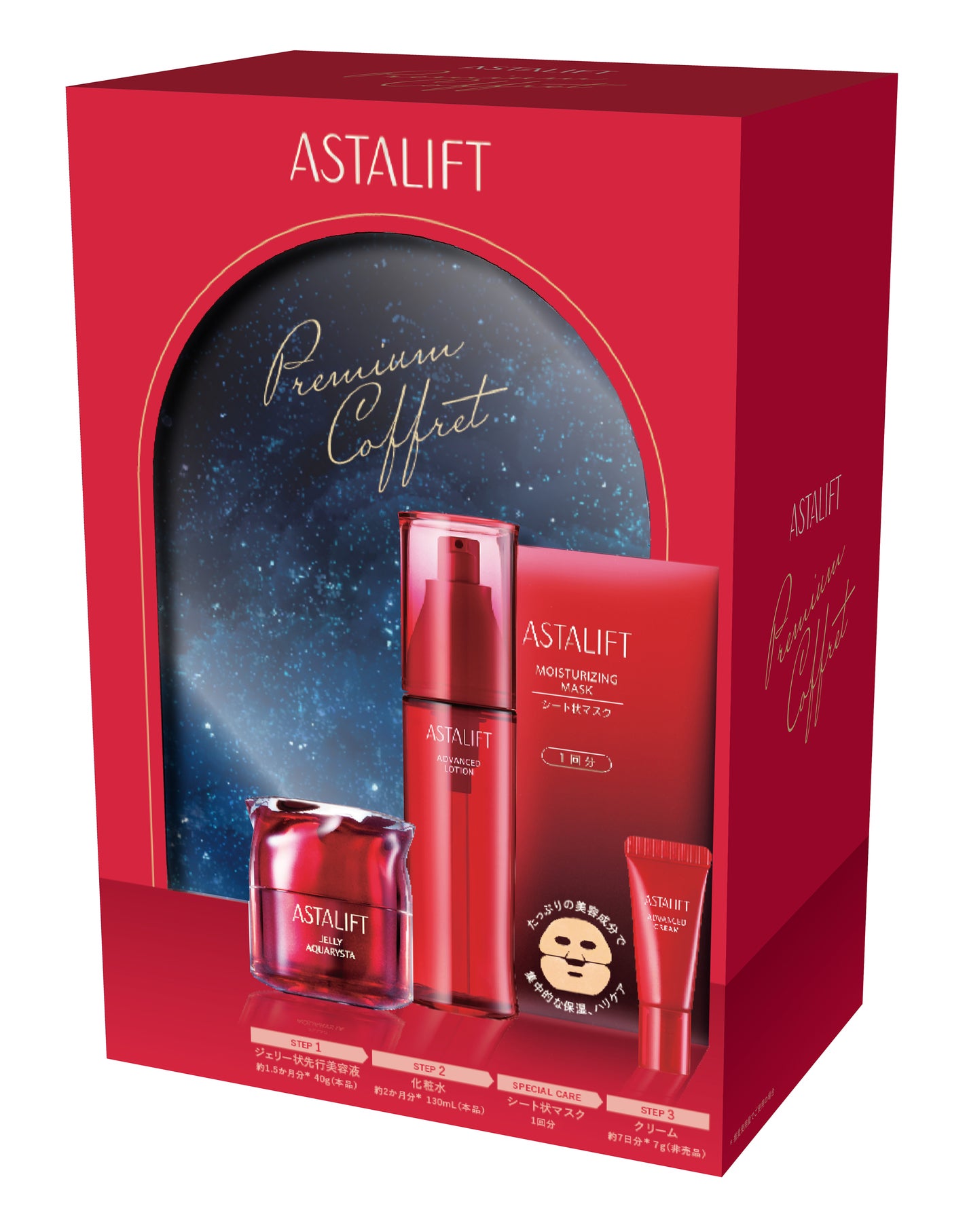 | 商品の特徴 | アスタリフト プレミアムコフレB(アスタリフト/ASTALIFT)|通販。アスタリフト プレミアムコフレB(アスタリフト/ASTALIFT)|通販。新品未開封 アスタリフト プレミアムコフレB。アスタリフトを代表するスキンケアアイテムを詰め合わせたキットアスタリフトを代表するジェリー状先行美容液[ジェリーアクアリスタ]と深いうるおいを蓄え、弾むようなハリを与える化粧水[アドバンスドローション]の2アイテムはレギュラーサイズをお届けします。輝くようなつやを与え、ふっくらとしたハリを与える[アドバンスドクリーム]のミニサイズと、集中保湿ケアする高機能マスク1回分が付いてきます。ジェリーとマスクを一緒に使うことで肌をうるおいで満たします。単品合計¥15,400(税込)セットで買うと¥11,000(税込)にアドバンスドクリームミニ(7g)もセットに。通常の単品販売価格より4,400円(税込)お得になっています。◆ASTALIFT(アスタリフト)写真フィルム分野で培った独自のナノテクノロジーで成分を極小化し、安定・高濃度配合することに成功しました。ナノ化した成分は、肌の角層の隙間に深く浸透※1し、必要とされる場所まで送り届けられます。※1角層まで。アスタリフト プレミアムコフレ A(アスタリフト/ASTALIFT)|通販。POLAポーラ BA ローション7 & ミルク7 10個セット。な*ぎ様 アルビオン エクシア ブライトニング イマキュレート セラム トライア。イオン化粧品 ヴィタピアレス 32g 2個セット 新品 IONkesho。vuvuプラチナブブ 3点セット。クレドポーボーテ ローション エサンシエルC(クリア)170ML。コスメデコルテ ユースパワー エッセンス ローション サンプル 40包 | ||