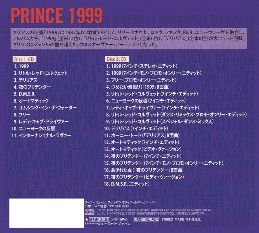 | 商品の特徴 | 1999 -スーパー・デラックス・エディション-/PRINCE/プリンス。Prince / プリンス「1999:Deluxe Edition / 1999:デラックス。Prince / 1999 super deluxe reissue offers a wealth of。Prince - 1999 Deluxe Edition - Prince。商品の説明はありません | ||