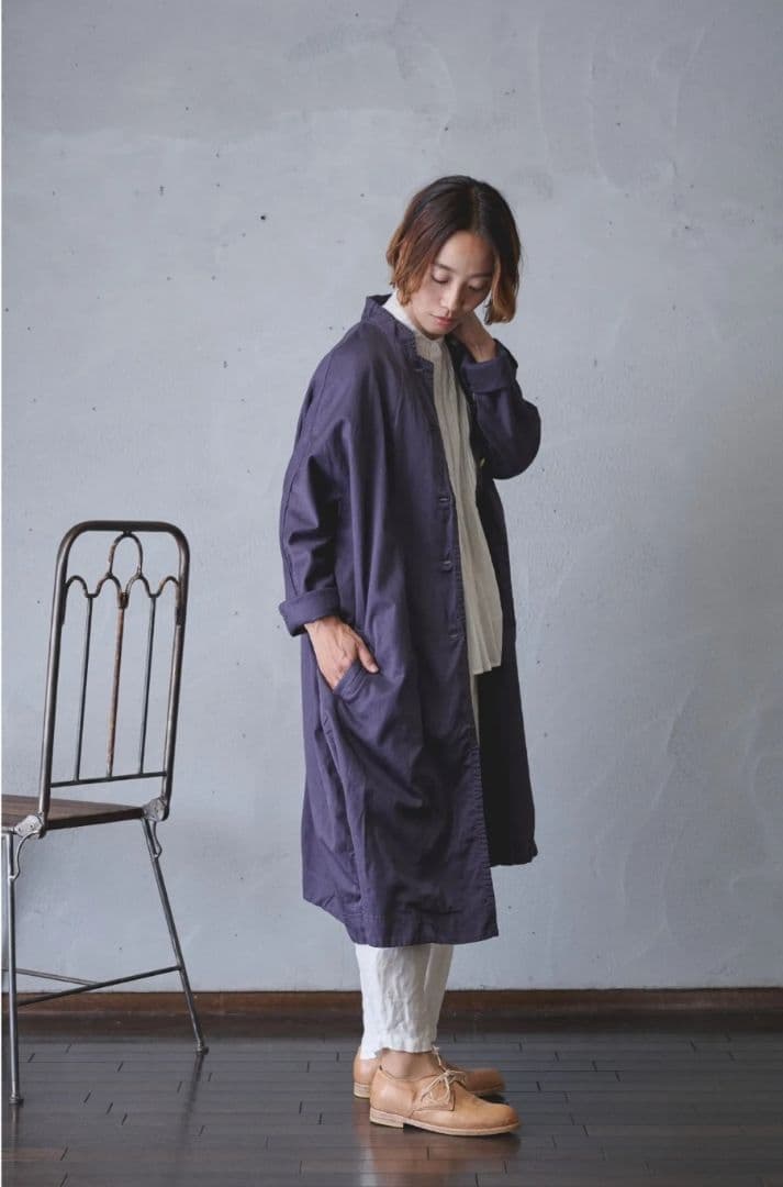 | 商品の特徴 | Véritécœur アローコート パープルネイビー Véritécœur アロー。Véritécœur アローコート パープルネイビー。Véritécœur アローコート パープルネイビー。veritecoeur(ヴェリテクール)のアローコート色 パープルネイビー袖の付け根に切り替えがなく、手を広げると矢の様なラインになる事から名付けられたアローコート!着て頂くと生地が肩に沿い、綺麗なシルエットを作ってくれます!後ろには深めのスリットが入っており、動きやすいデザインです!裏地のない軽い着心地で、アウターとしては季節の変わり目に丁度よい生地感です。寒い季節には、室内での羽織りにおすすめです!コットン 100%表記サイズ 1身幅 57㌢総丈 99㌢裄丈 75.5㌢袖口幅 14㌢裾幅 79㌢ご質問、ご購入の際はプロフィールをご覧くださいね☆。Veritecoeur (ヴェリテクール) アローコート | ||